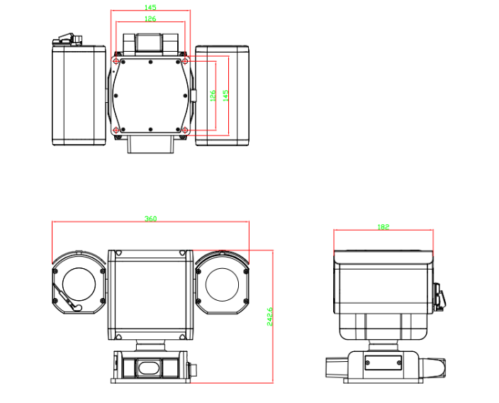 –副云台摄像头支持垂直-90°~ + 20°旋转